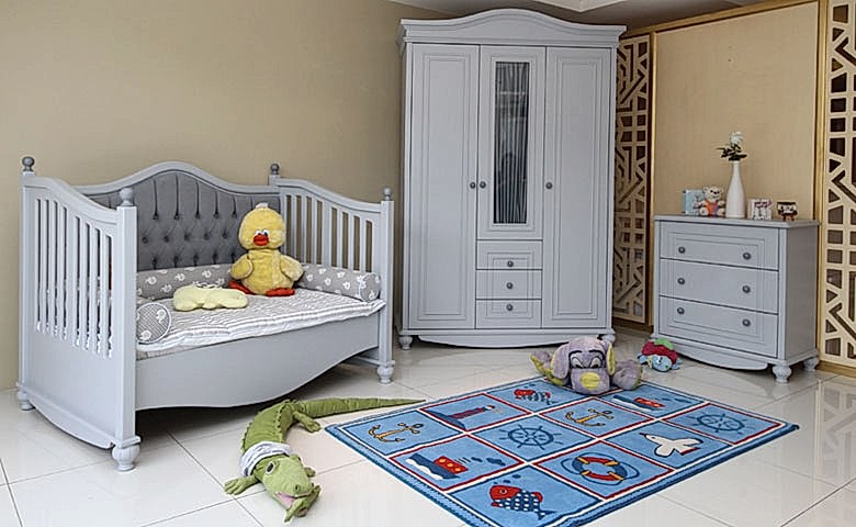 Tamamen doğal ahşaptan el işçiliği ile üretilen lüks bebek odası takımı, bebek beşiği, dolaplı çekmecesi ve lüks gardırobu ile kullanıcıların beğenisine sunuluyor. Bebek odası takımına odaya renk katması açısından lüks aksesuarlar, halı ve perde gibi ev tekstil ürünleri de kullanıcıların taleplerine göre opsiyonel olarak dahil edilebiliyor.