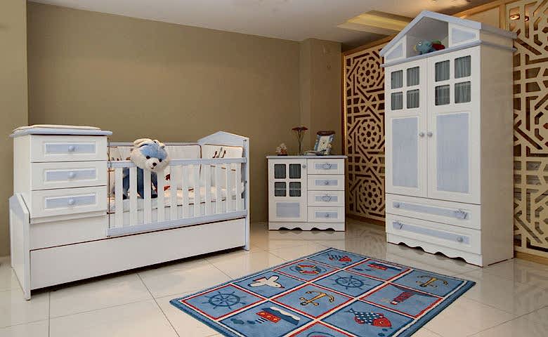 Lüks bebek odası takımı ahşap beşik, modüler gardırobu ve çekmeceli dolabı ile kullanıcıların beğenisine sunuluyor. Gardırobun boyutunu arttırmak adına iki yanına dikey şekilde tasarım bütünlüğünü bozmadan modüler dolaplar dahil edilebiliyor. Böylece geniş bir iç hacim sunan çocuk odası gardıroba bebeğinizin tüm eşyalarını rahatlıkla sığdırabileceksiniz.
