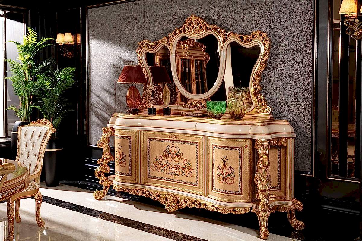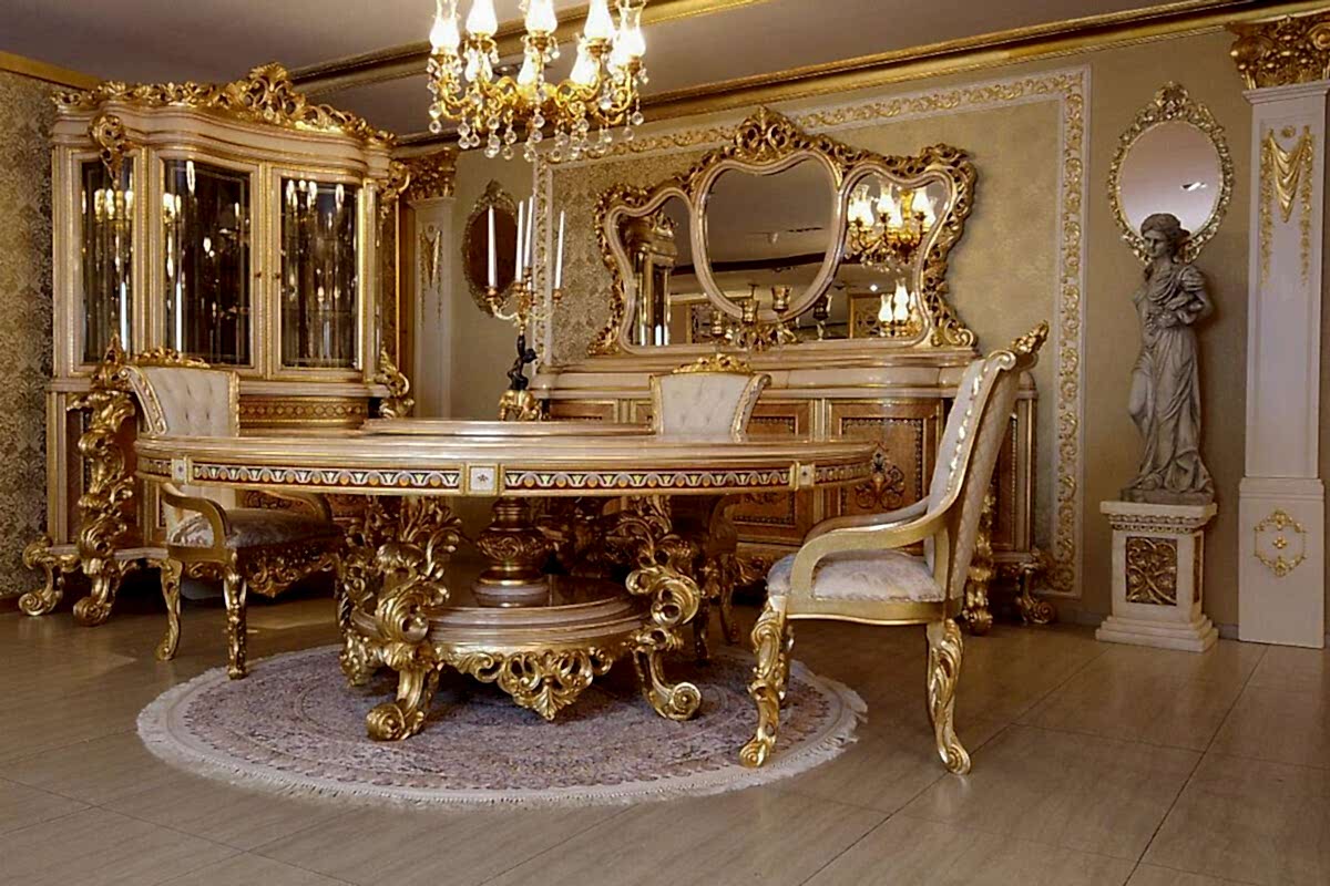 Klasik yemek odası takımı, lüks yaşam alanları dekore etmek isteyen kullanıcıların ilgisini çekiyor. Desenleri sedef detayları ile klasik mobilya tasarımlarına yeni bir soluk katan, Endülüks klasik yemek odası takımı oyma işçiliğinin bir eseri olarak üretildi. Özenle dizayn edilmiş altın varakları, oyma motifleri ile dikkatleri üzerine çekerken, sedef desenleri ve dokusu Endülüs Lüks Yemek Odasının genel tasarım çizgisini belirliyor.